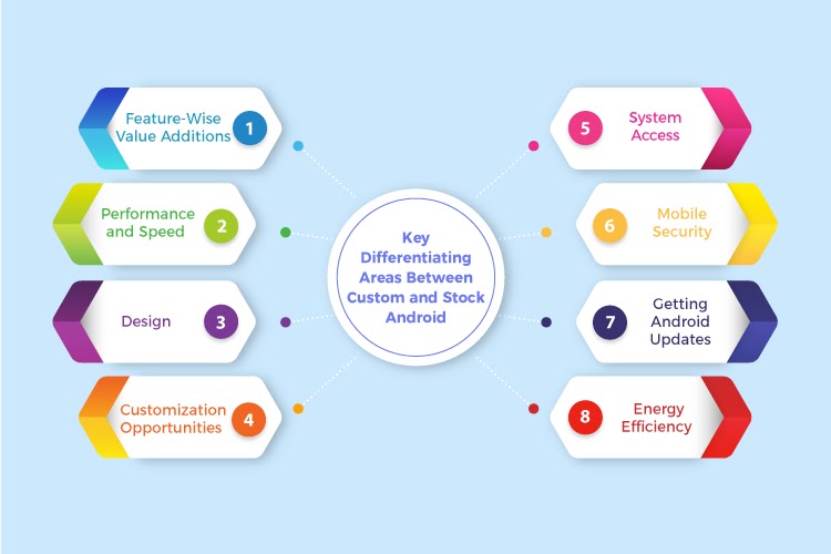 Since we have a clear idea about the basic definition and the key characteristics of stock and custom android, it is time to understand the key differentiating areas between them.